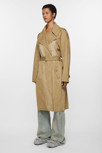Belted coat crafted in twill cotton with a garment-dyed finish and an Acne Studios logo patch at the centre back. Crafted Complete with buttoned and belted closure. Cut to a regular fit with dropped shoulders and mid-length. - Regular fit - Mid-length - Drop shoulders with epaulettes - Leather logo patch - Button-up and belted closure - Belted cuffs - Front pockets - Back storm flap - Back vent - Model is 180 cm / 5'11 and wears a size 36 - Style ID: FN-WN-OUTW000999 - Made from organically grown cotton. - Shell: 100% Organic cotton, Pocket Lining: 100% Cotton, Patch: 100% Cow leather