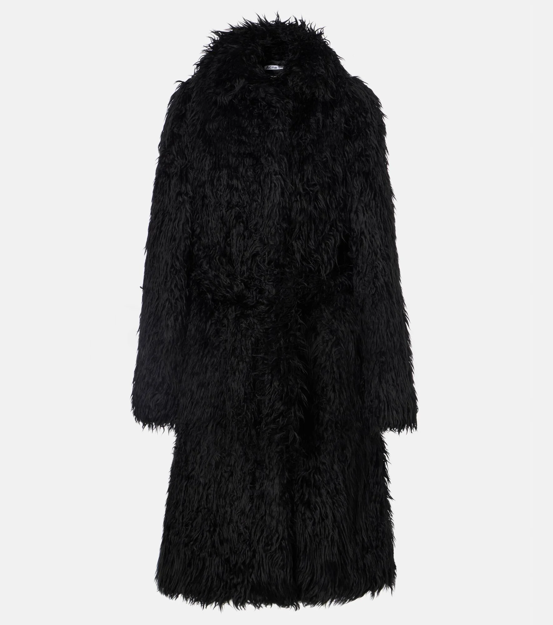 Stockholm-based Acne Studios has earned a firmly established cult following through its cool Scandinavian aesthetic. This plush coat features a slightly oversized silhouette, a hook-fastening front, and a detachable belt at the waist. Product Details - Material: 80% acrylic, 20% polyester - Care instructions: dry clean - Made in Bulgaria - Designer color name: Black - Item color: black - Lining: 50% acetate, 50% viscose - Detachable belt - Closure: hook-fastening front - Item number: P01114272 Size & Fit - True to size - Loose fit, comes with belt - Non-stretchy fabric - The model seen in the picture is 178cm-5'10" and wearing a size DE 34