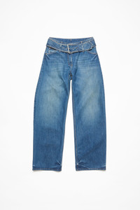 Belted denim trousers - Mid Blue