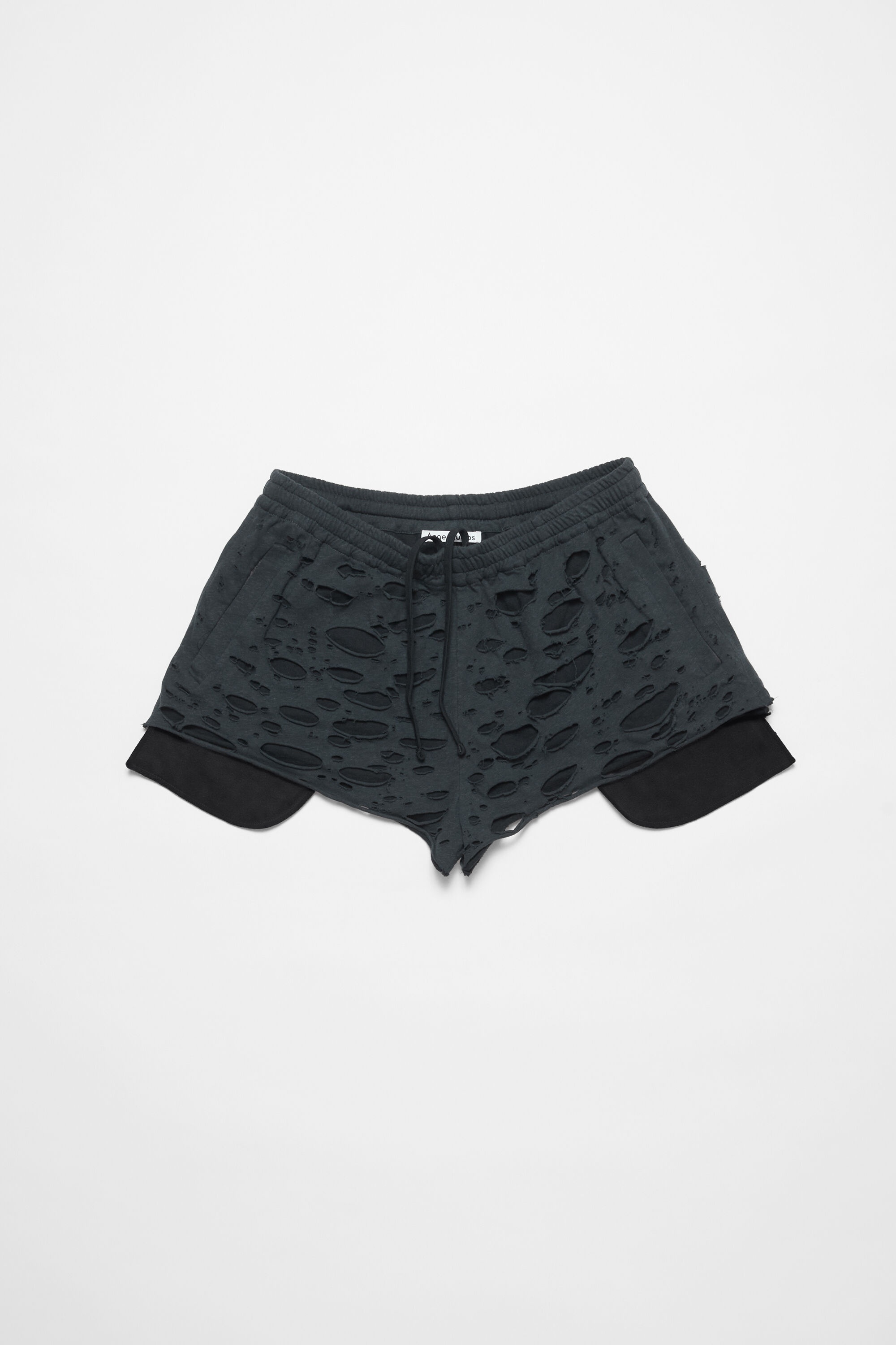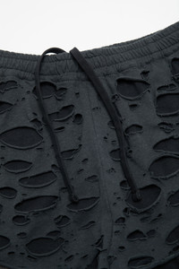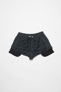 Shorts are crafted from jersey cotton with laser-cut distress detailing and visible pocket lining with logo embroidery. Cut to a relaxed fit and above the knee length. - Relaxed - Elasticated waistband - Above the knee length - Distressed lace cuts - Embroidery logo - Front pockets with visible lining - Model is 187 cm / 6'1 and wears a size M - Style ID: FN-MN-SHOR000274 - Shell: 100% Cotton, Lining: 100% Cotton