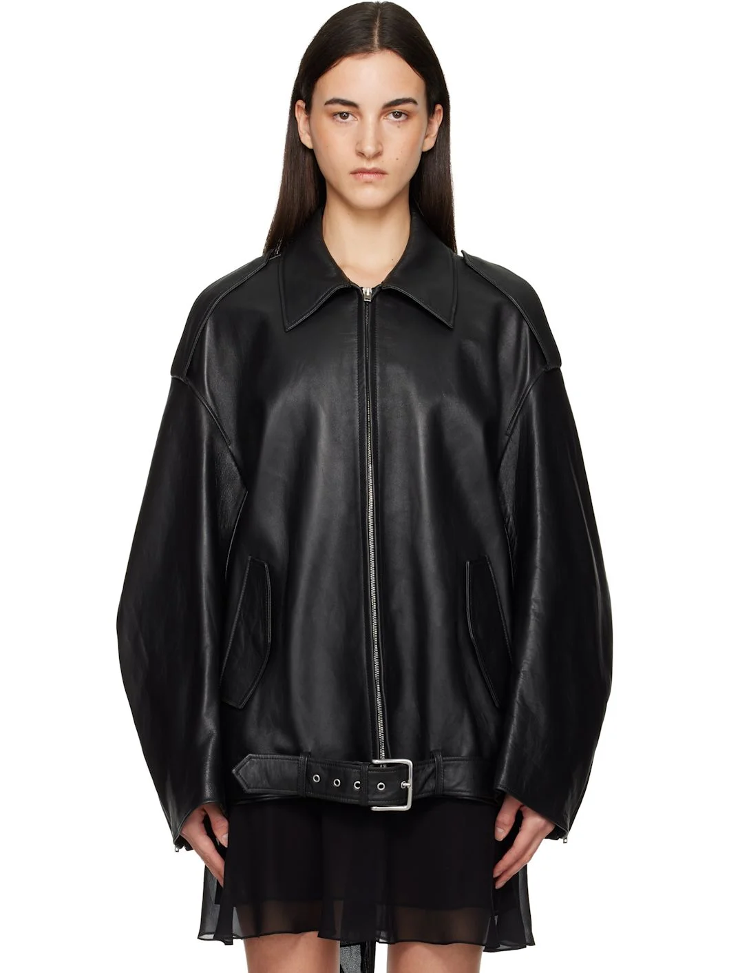 Grained lambskin jacket. · LWG-certified · Spread collar · Two-way zip closure · Flap pockets · Belt loops and integrated belt at hem · Epaulets · Dropped shoulders · Zip vent at cuffs · Logo patch at back · Press-stud tabs at back hem · Satin lining Supplier color: Black Body: 100% lambskin. Lining: 100% viscose. Made in Italy 252129F064005