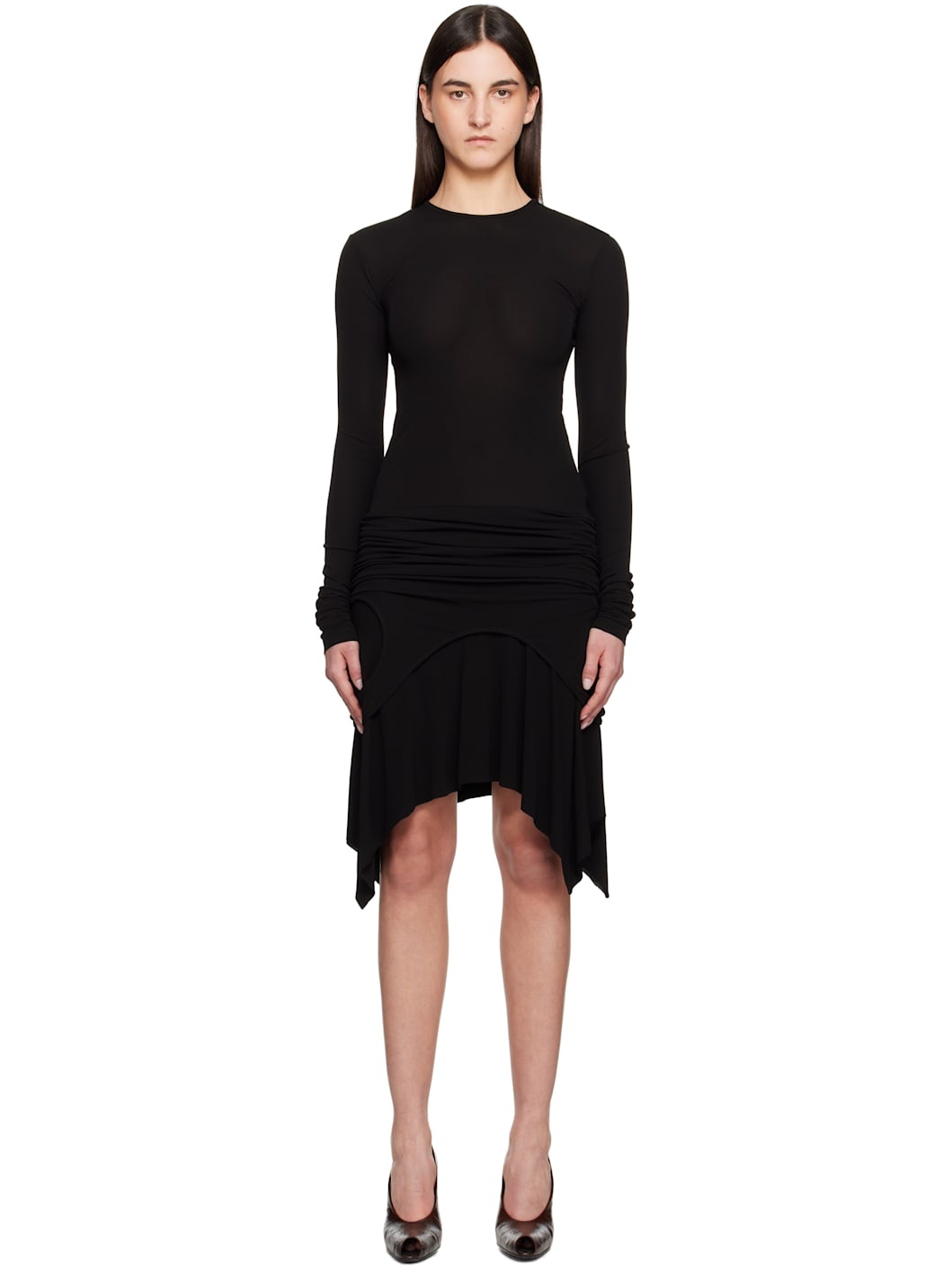 Viscose crepe midi dress. · Layered construction · Round neck · Inverted tank top-style overlay · Raw edge at asymmetric hem · Gathering at side seams Supplier color: Black 100% viscose. Made in Portugal 251129F054015