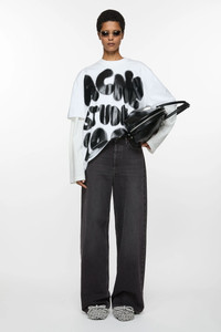 Jeans feature an eco salt-and-pepper wash on deep black overdyed denim. 1981 jeans are cut to a loose unisex silhouette with a low to mid waist, wide baggy leg, and long length. - Loose fit - Low to mid waist - Wide, baggy leg - Long length - Back leather logo patch - 5-Pocket construction - Button fly - Female model is 180 cm / 5'9 and wears Small/Regular: size 36, denim 27 waist/32-34 length. - Male model is 188 cm / 6′2 and wears Small/Regular: size 46, denim 29 waist/32-34 length. - Unisex jeans are designed to sit low on the waist. For a higher rise, we recommend selecting one size down. - Style ID: Acne Studios 1981 U Vintage Black - Made from organically grown cotton - Shell: 100% Cotton, Patch: 100% Cow leather