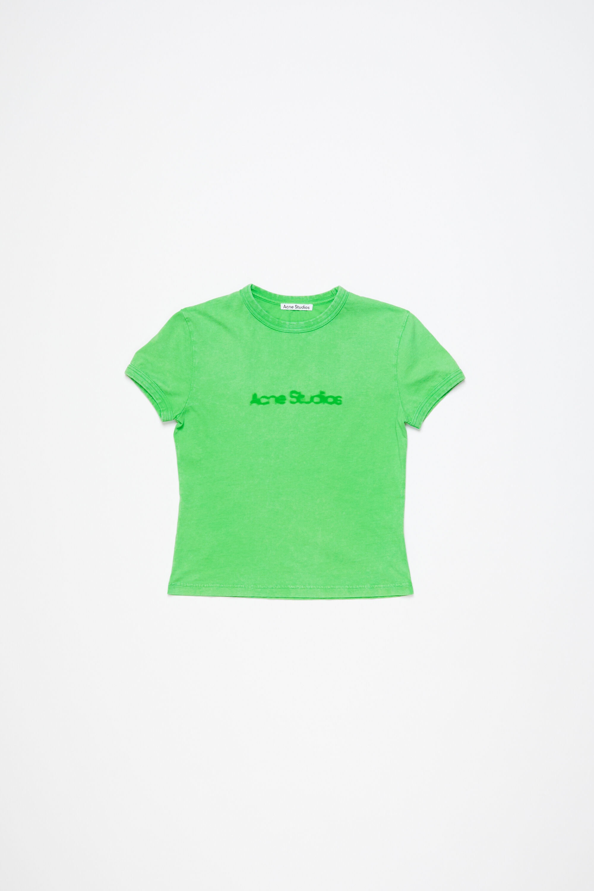 Crew neck t-shirt features an Acne Studios blurred logo animation crafted from cotton jersey with a slightly textured and vintage finish. Cut to a fitted unisex fit. - Fitted unisex fit - Blurred Acne Studios logo - Model is 179 cm / 5’11 and wears a size S - Style ID: FN-UX-TSHI000104 - Made from organically grown cotton. - Shell: 100% Cotton