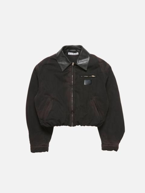 Bomber blouson jacket is crafted from twill cotton with a garment-dyed finish and enzyme wash. Adorned with an Acne Studios Stockholm 1996 logo patch at the front. Constructed with a shirt collar, centre front zipper closure, side pockets and elasticated waistband. Cut to a regular fit and hip length with an elasticated waistband. - Regular fit - Hip length - Elasticated hem - Acne Studios logo tab - Zipper closure with logo tab puller - Chest and front pockets - Fully lined - Model is 179 cm / 5'11 and wears a size 36 - Style ID: FN-WN-OUTW001023 - Made from organically grown cotton. - Shell: 100% Cotton, Contrast: 100% Preferred cow leather, Patch: 100% Cow leather