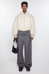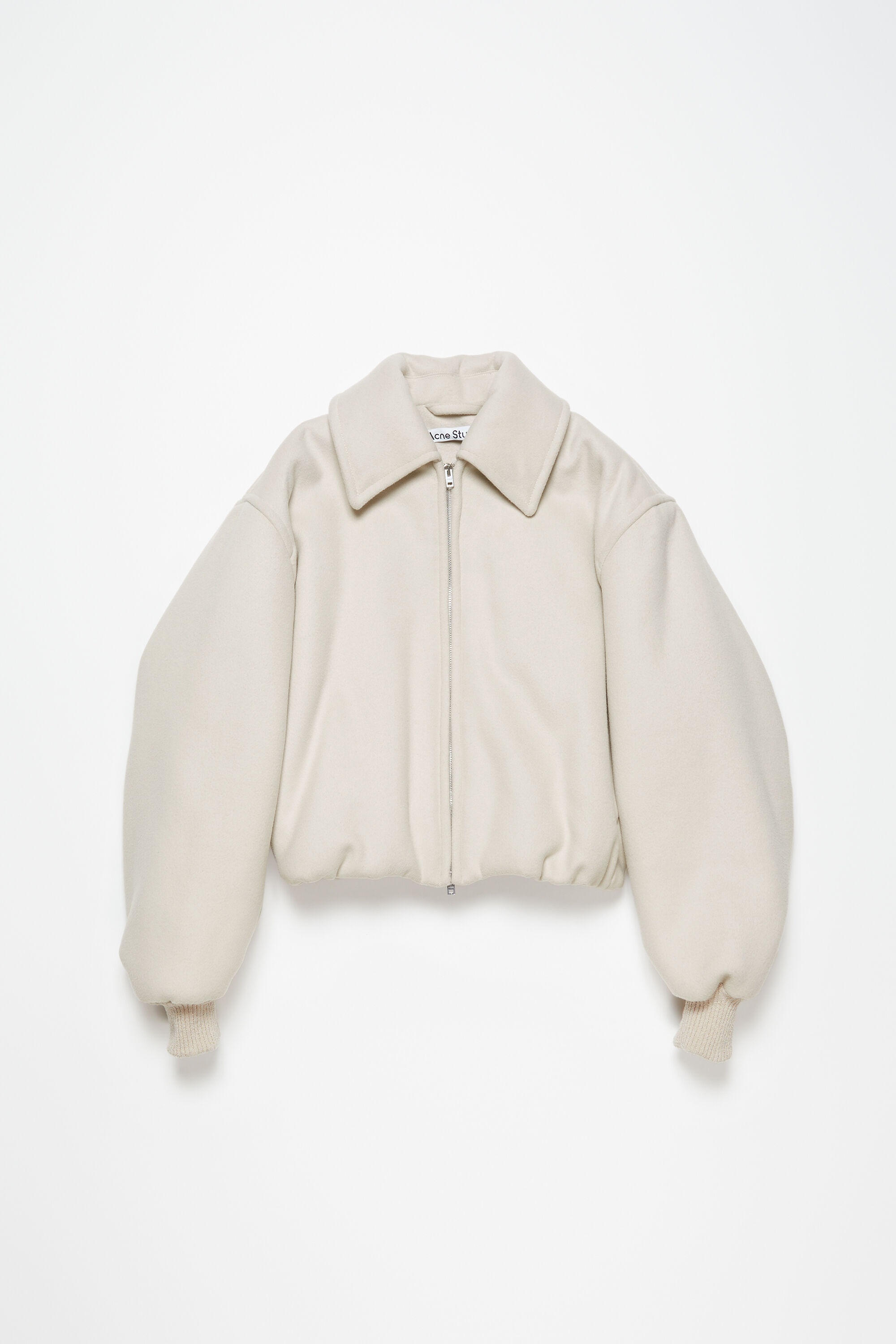 Bomber jacket is crafted from a wool blend, detailed with an Acne Studios silver-toned plaque and a centre front 2-way zipper closure. Cut to a relaxed fit with dropped shoulders and below the waist length. - Relaxed fit - Below waist - Centre front 2-way zipper closure - Acne Studios logo plaque - Side seam pockets - Ribbed cuffs - Model is 177cm/ 5'10 and wears a size 36 - Style ID: FN-WN-OUTW000949 - Made from organically grown cotton. - Shell: 75% Wool, 25% Nylon, Lining: 100% Preferred viscose, Pocket Lining: 100% Organic cotton, Filling: