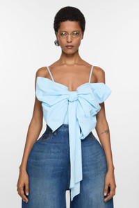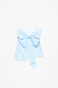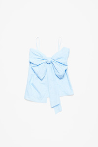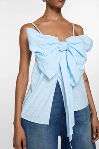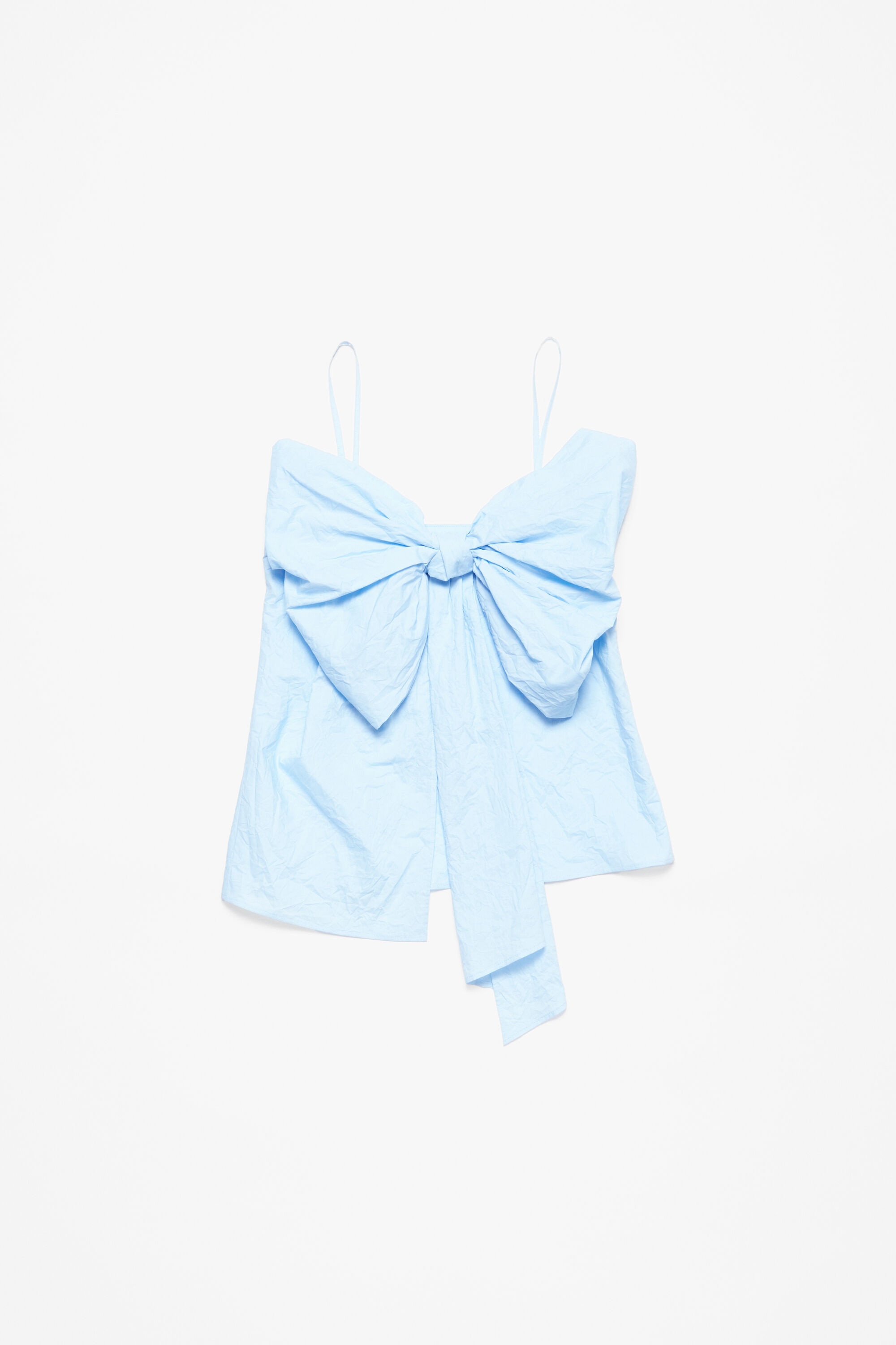 Strap blouse features a voluminous bow construction at the front, crafted from poplin cotton with a soft crinkled finish. - Regular fit - Hip length - Strap - Bow detailing - Model is 180 cm / 5'11 and wears a size 36 - Style ID: FN-WN-BLOU001129 - Shell: 100% Cotton