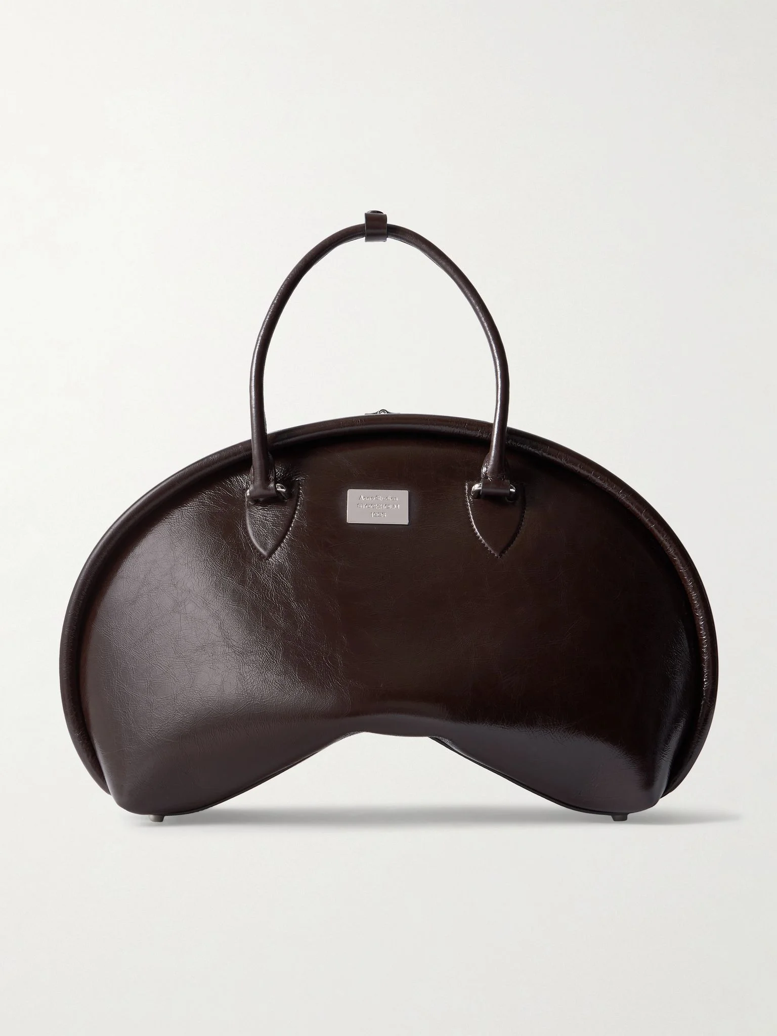 Defined by its curved base, Acne Studios' bag is similarly shaped to a fortune cookie. It's made from glossy leather with a subtly crinkled texture and accented by silver-tone hardware, including metal feet to keep the base stable and scuff-free. There's plenty of space for your wallet, scarf and small cosmetics pouch inside. Details & Care - Dark-brown leather - Two top handles - Internal zipped pocket - Fully lined - Two-way zip fastening along top and sides - Weighs approximately 3.3lbs/ 1.5kg