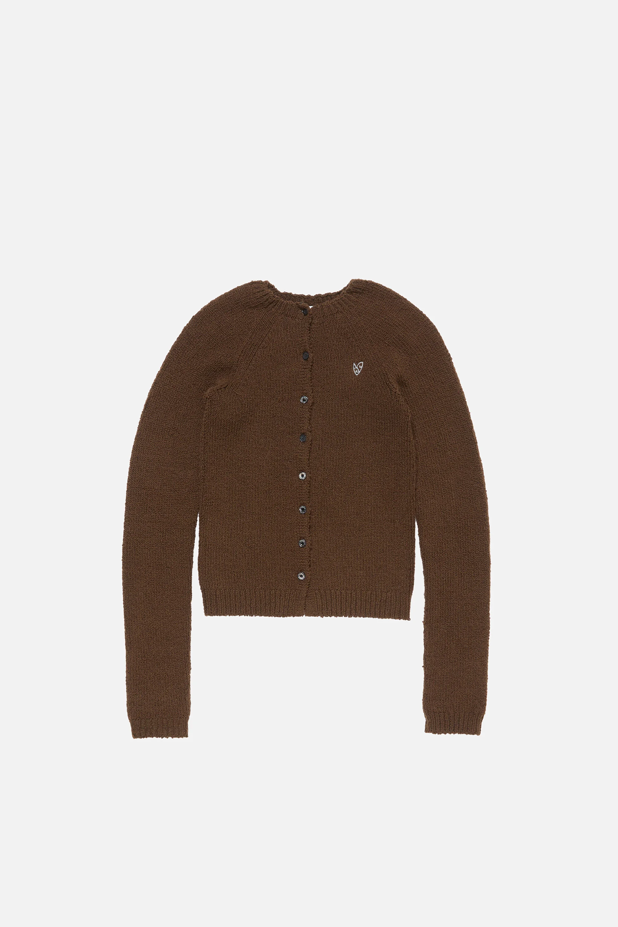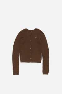 Button-up cardigan with a crew neckline, crafted from midweight knit with a soft textured finish and ribbed edges. Finished with an off-white embroidered seasonal heart logo. Cut to a fitted style and below-waist length. - Fitted - Crew neck - Button-up closure - Below-waist length - Embroidered seasonal heart logo - Model is 177 cm / 5'8" and wears size S - Style ID: FN-WN-KNIT000858 - Made from organically grown cotton and recycled nylon - Shell: 27% Nylon, 1% Elastane, 72% Cotton