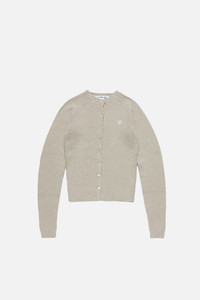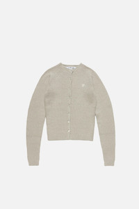 Button-up cardigan with a crew neckline, crafted from midweight knit with a soft textured finish and ribbed edges. Finished with an off-white embroidered seasonal heart logo. Cut to a fitted style and below-waist length. - Fitted - Crew neck - Button-up closure - Below-waist length - Embroidered seasonal heart logo - Model is 177 cm / 5'8" and wears size S - Style ID: FN-WN-KNIT000858 - Made from organically grown cotton and recycled nylon - Shell: 27% Nylon, 1% Elastane, 72% Cotton