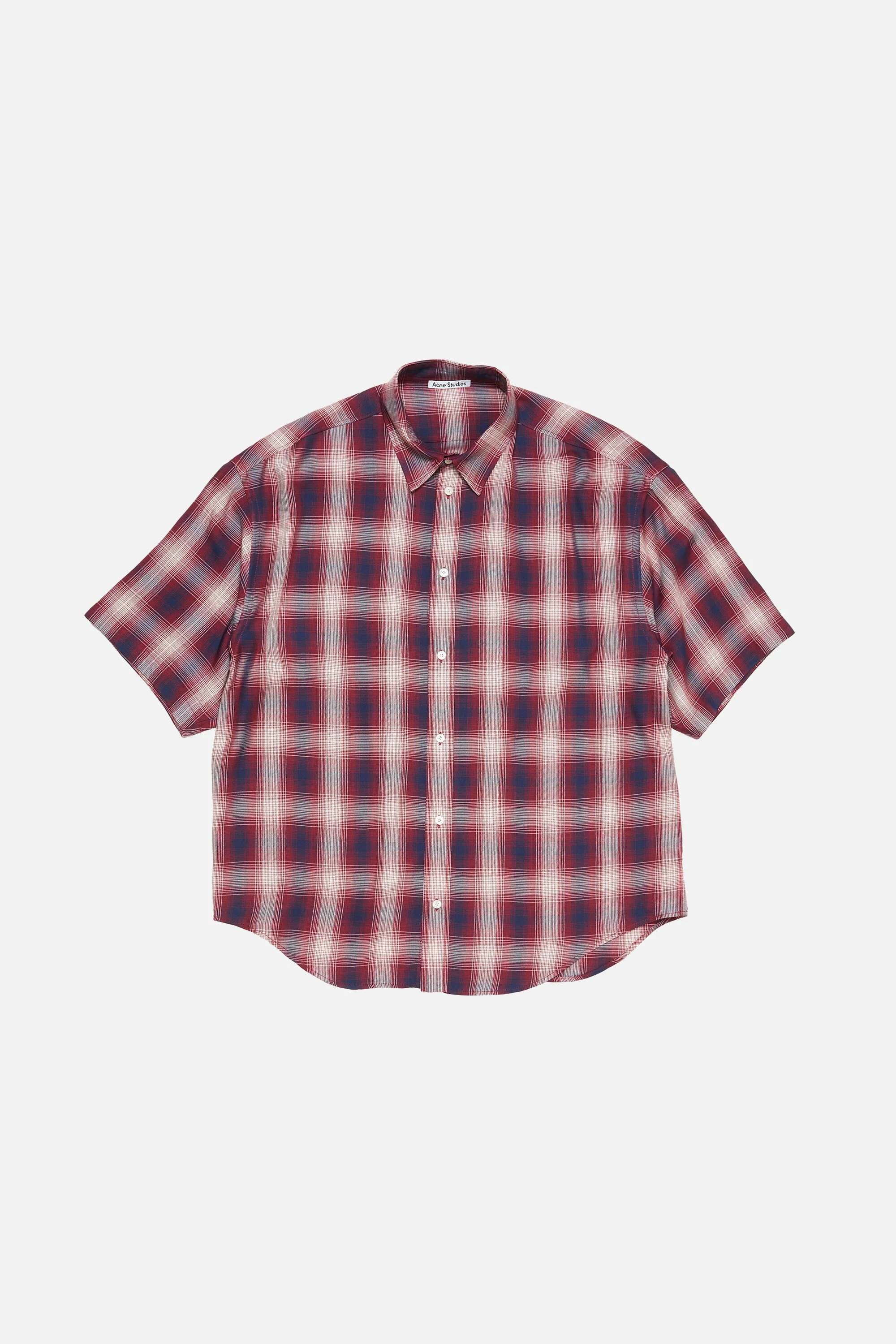 Short sleeve button-up shirt features check animation crafted in a fluid fabric. Cut to a relaxed fit and below hip length. - Relaxed fit - Below hip - Check pattern - Female model is 177 cm / 5'10 and wears a size XS - Male model is 187 cm / 6'2 and wears a size M - Style ID: FN-UX-SHIR000063 - Shell: 100% Preferred viscose