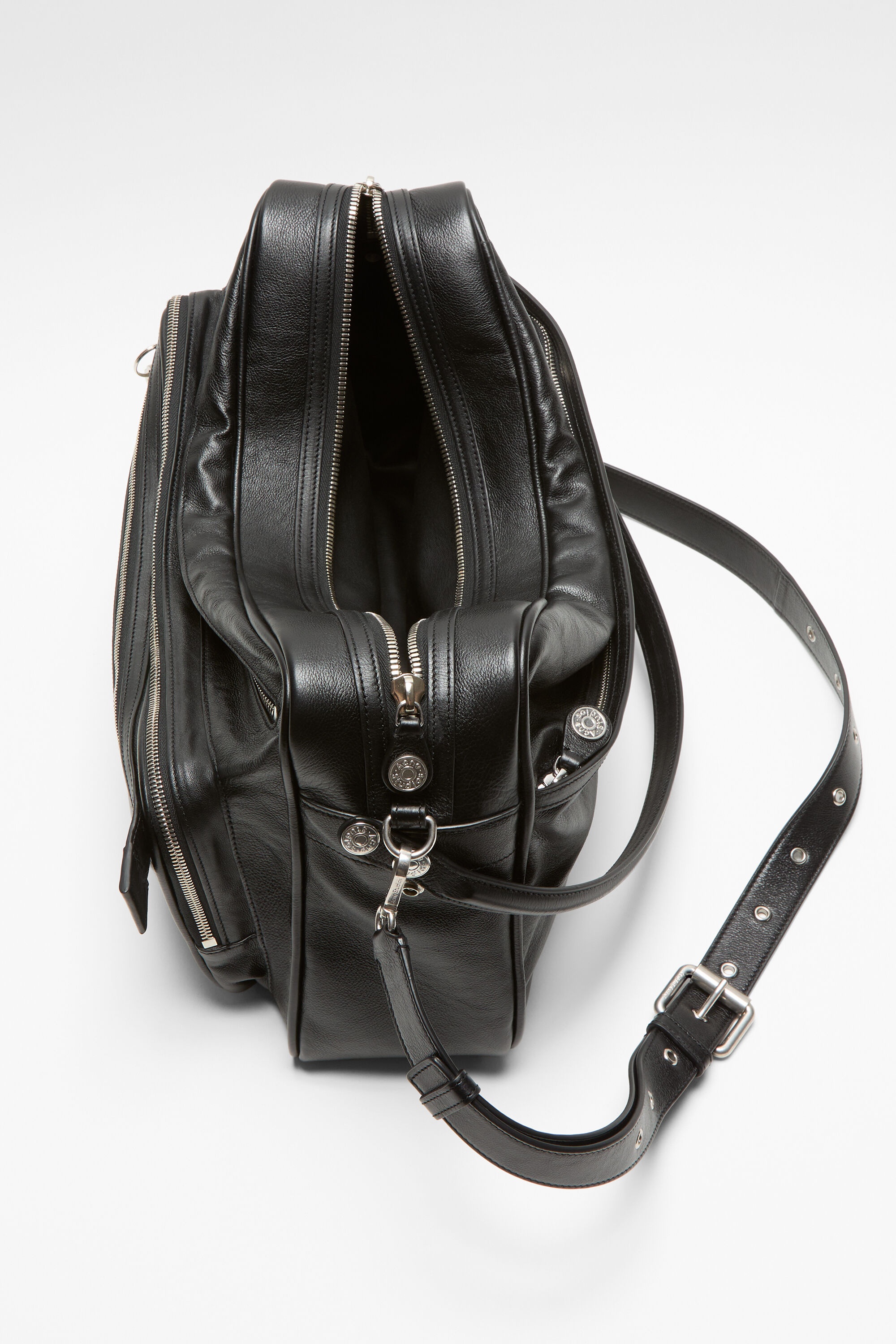 The Camero bag features a multipocket typology with a soft, rectangular design and a compact, structured silhouette. Accented with multiple zip compartments, branded key charm and signature denim-style button logo detail accents. Complete with a drop handle and adjustable crossbody strap for seamless wear. Bag is styled with accentuated shape to give it a modern, relaxed attitude through its distinctive collapsed silhouette. - Drop handle and adjustable crossbody strap - Acne Studios logo embossed - Silver-toned zip compartments and denim-style button - Branded key charm - Measurements: 280mm; 420mm; 110mm - Drop handle measurements: 8cm, max - Crossbody strap measurements: Adjustable 42 cm to 65 cm - Style ID: Camero Camera - Shell: 100% Preferred calf leather, Lining: 50% Polyurethane, 50% Polyester
