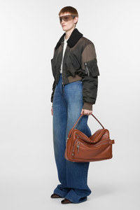 The Camero bag features a multipocket typology with a soft, rectangular design and a compact, structured silhouette. Accented with multiple zip compartments, branded key charm and signature denim-style button logo detail accents. Complete with a drop handle and adjustable crossbody strap for seamless wear. Bag is styled with accentuated shape to give it a modern, relaxed attitude through its distinctive collapsed silhouette. - Drop handle and adjustable crossbody strap - Acne Studios logo embossed - Silver-toned zip compartments and denim-style button - Branded key charm - Measurements: 280mm; 420mm; 110mm - Drop handle measurements: 8cm, max - Crossbody strap measurements: Adjustable 42 cm to 65 cm - Style ID: Camero Camera - Shell: 100% Preferred calf leather, Lining: 50% Polyurethane, 50% Polyester