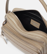 Product Details - Material: leather - Lining: leather - Made in Italy - Designer color name: Taupe beige - Includes: dust bag - Closure: zipped top - Top handle, Detachable shoulder strap - Hardware color: silver - Internal details: Card slots - Zipped front pocket - Back pocket - Item number: P01001244 Size & Fit - Height 17cm-6.5" - Width 27cm-10.5" - Depth 6cm-2.5" - Length of handle 54cm-21.5" - Min. length shoulder strap 79cm-31" - Max. length shoulder strap 119cm-47"
