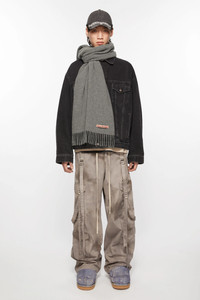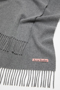 Fringed scarf is crafted from midweight wool with a soft hand-feel, detailed with a pink Acne Studios label. - Fringed ends - Midweight wool - Pink Acne Studios label - Measurements including fringe: 200 cm length; 45 cm width - Fringe measurements: 10 cm approx. - Made in Italy - Style ID: FN-UX-SCAR000218 - Made with certified wool according to the Responsible Wool Standard. Certified to the Responsible Wool Standard (RWS) by Control Union, license number CU-1024001 - Shell: 100% Wool