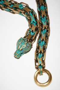 Acne Studios dark military green/ brass necklace is crafted from brass with a vintage finish and palladium. Detailed with a wolf head closure. - Shell: 100% Brass