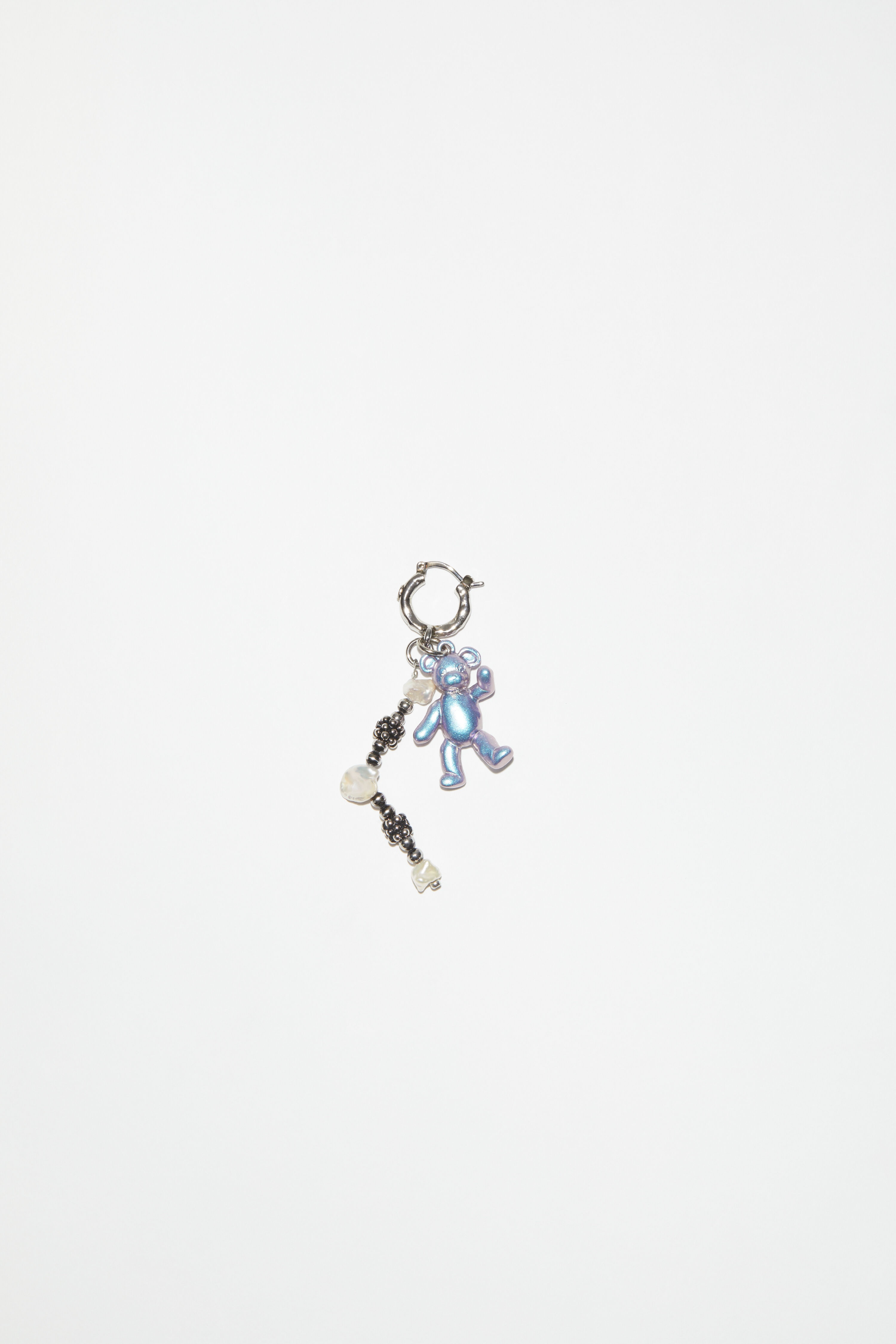 Antique silver earring is adorned with a pearl chain and teddy charm. - Single earring - Charm pearl chain and teddy - Measurements: 73 mm - Style ID: FN-UX-JEWE000426 - Shell: 100% Brass