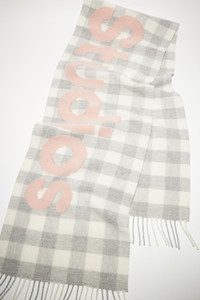 Fringe scarf features an all-over check pattern, contrast jacquard woven fil coupé Acne Studios logo and crafted from a rich wool blend. - Check pattern - Acne Studios logo - Fringed ends - Measurements: 37 cm; 205 cm - Style ID: FN-UX-SCAR000297 - Made with responsible wool. - Shell: 95% Wool, 5% Nylon