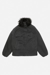 Coated cotton fabric with a subtle grid weave for added durability, finished with a funnel neck featuring faux fur detailing. Complete with a center front snap-button closure, front pockets, elasticated cuffs, and back tabs. Finished with a leather logo tab on the back neckline. Cut to a relaxed fit with relaxed sleeves and below-hip length. - Relaxed fit - Below-hip length - Funnel neck with faux fur - Relaxed sleeves - Snap-button closure - Front pockets - Elasticated cuffs - Back tabs - Leather logo tab - Model is 177 cm / 5'8 and wears a size 36 - Style ID: FN-WN-OUTW001073 - Made from organically grown cotton - Shell: 100% Cotton, Lining: 100% Cotton, Contrast: 80% Modacrylic, 20% Acrylic, Filling: 5% Nylon, 95% Polyester