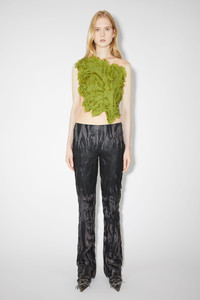 Acne Studios black/beige trousers are crafted from washed and creased leather with a waxy hand feel. Cut to a fitted fit with a high waist and long length. - Fitted fit - High waist - Long length - Washed and creased finish - Hidden back zipper closure - Model is 180 cm / 5′11 and wears a size 36 - Style ID: FN-WN-TROU001099 - Shell: 100% Lamb leather, Lining: 100% Viscose