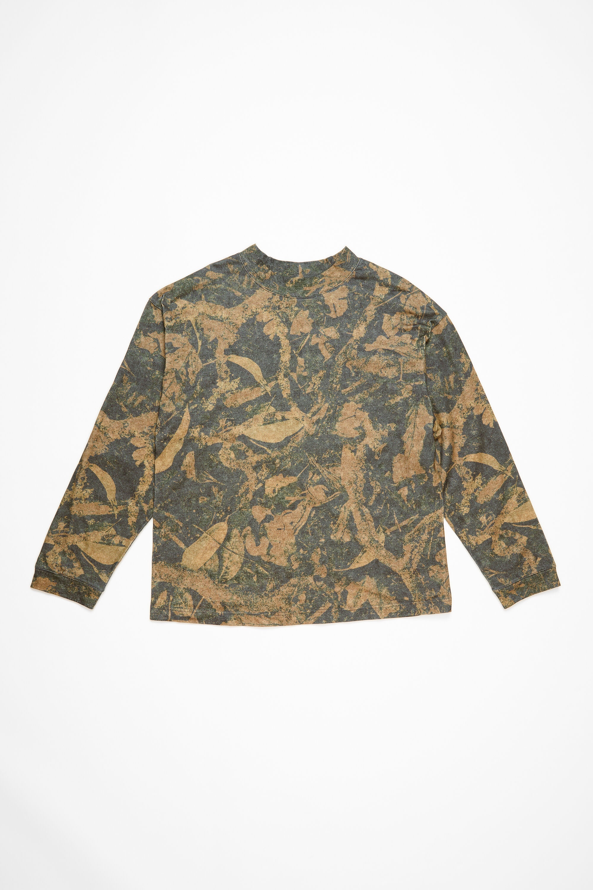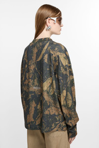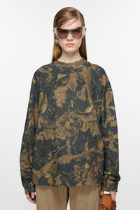 Crew neck sweater crafted in peached fine cotton jersey with a garment dyed finish, detailed with a seasonal animation print. Cut to a relaxed unisex fit. - Relaxed unisex fit - Crew neck - Seasonal camouflage print - Ribbed neckline and cuffs - Female model is 180 cm / 5′11″ and wears a size XS - Male model is 188 cm / 6'2 and wears a size M - Style ID: FN-UX-TSHI000099 - Made from organically grown cotton. - Shell: 100% Cotton