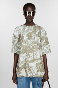 Crew neck t-shirt crafted in peached fine cotton jersey with a garment dyed finish, detailed with a seasonal animation print. Cut to a relaxed unisex fit. - Relaxed unisex fit - Crew neck - Seasonal camouflage print - Ribbed neckline and cuffs - Female model is 180 cm / 5′11″ and wears a size XS - Male model is 188 cm / 6'2 and wears a size M - Style ID: FN-UX-TSHI000098 - Made from organically grown cotton. - Shell: 100% Cotton