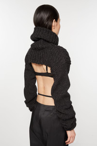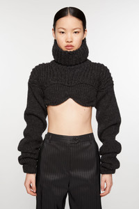 Knit top from the FW24 show collection crafted in a wool blend features a high neckline and bustier cut-out silhouette. Cut to a regular fit with elongated sleeves and a cropped length. - Regular fit - Cropped length - High neckline - Bustier cut - Model is 178cm/ 5'10 and wears a size 36 - Style ID: FN-WN-KNIT000776 - Shell: 91% Wool, 6% Viscose, 3% Nylon, Contrast: 85% Nylon, 15% Elastane
