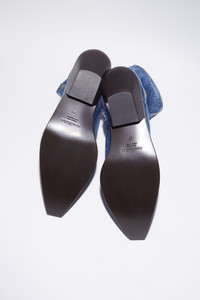 Acne Studios denim blue ankle boots are crafted from leather with a washed denim finish. Complete a pointed toe and western heel. - Washed denim - Pointed toe - Western heel - Heel height: 45 mm - Style ID: FN-WN-SHOE000681 - Made in Italy - Uppers: 100% Cotton, Lining: 100% Lamb leather, Soles: 100% Calf leather