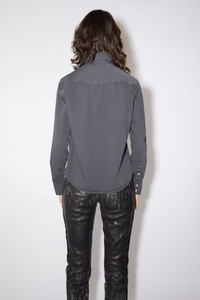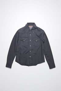 Acne Studios dark grey shirt is crafted from lightweight denim, detailed with western pockets and centre front snap button-up closure. Cut to a fitted silhouette with a curved hem. - Fitted fit - Curved hem - Western details - Snap button-up closure - Chest pockets - Model is 178 cm / 5′10 and wears a size 36 - Style ID: FN-WN-BLOU000910 - Shell: 100% Cotton