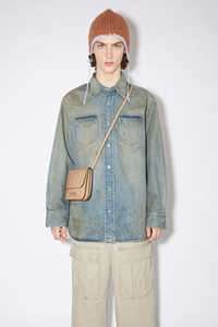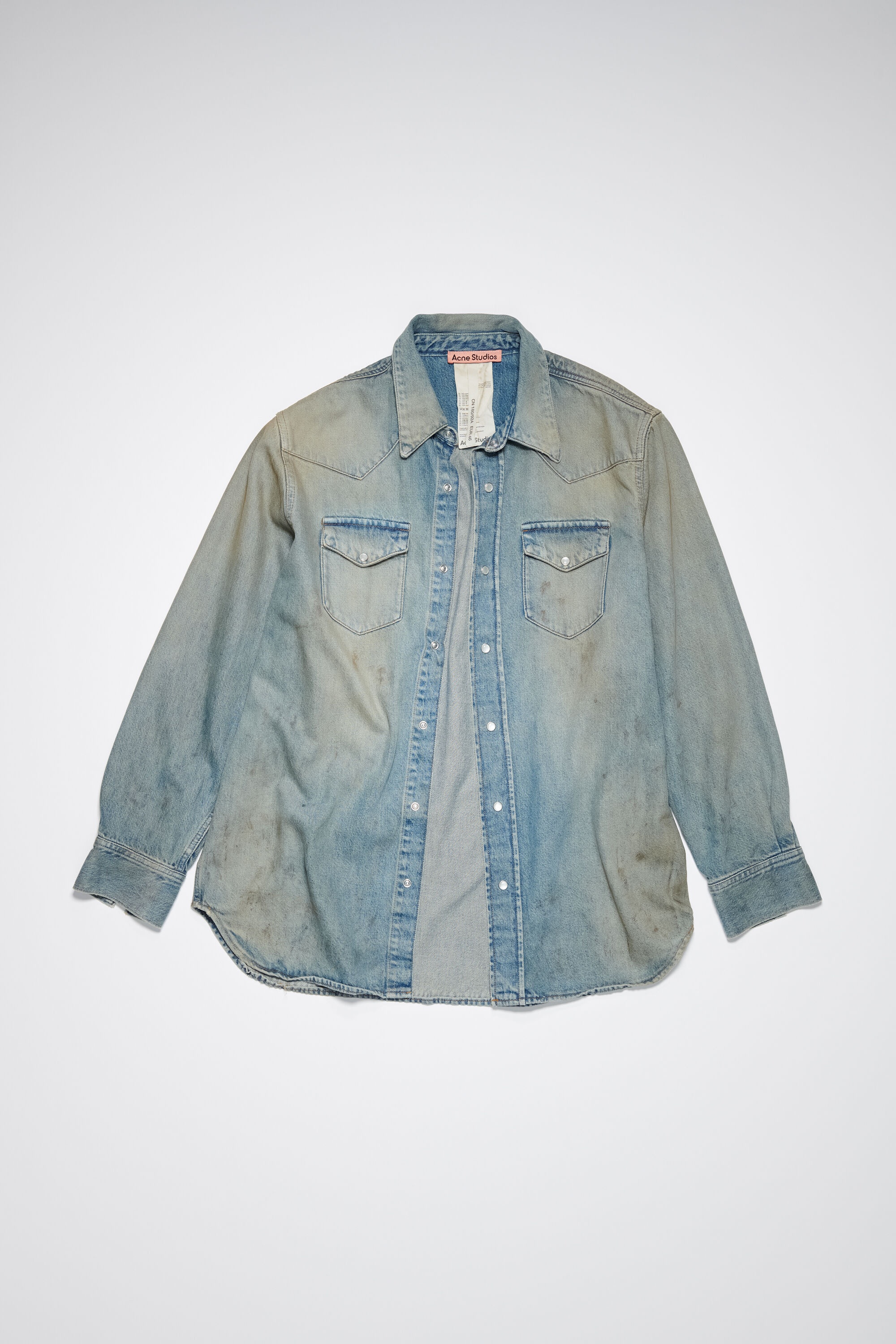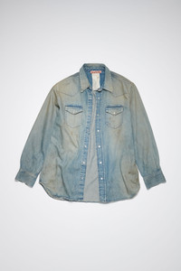Acne Studios mid blue button-up shirt is crafted from denim made of cotton with a faded and vintage finish. Complete with centre front snap button-up closure, chest pockets and a curved hemline. Cut to an oversized fit. - Oversized fit - Faded and vintage details - Snapp button-up closure - Curved hemline - Acne Studios pink label on side seam - Model is 186 cm / 6′1 and wears a size 46 - Style ID: FN-MN-SHIR000678 - Shell: 100% Cotton