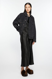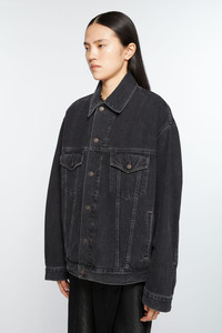 Denim jacket is crafted from non stretch denim in a black wash. Cut to a relaxed unisex fit with dropped shoulders and hip length. - Relaxed unisex fit - Dropped shoulders - Hip length - Chest pockets - Button-up closure - Female model is 179 cm / 5′11 and wears a size XS - Male model is 188 cm / 6′2 and wears a size M - Style ID: FN-UX-OUTW000062 - Made from organically grown cotton. - Shell: 100% Cotton