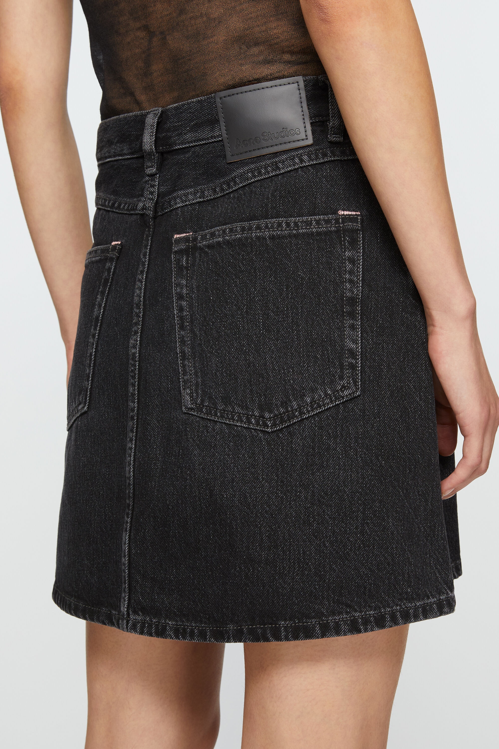 Denim skirt is cut to a regular fit with an a-line shape, high waist and short length. Crafted from non stretch cotton in black wash with a vintage finish. - Regular fit - A-line shape - High waist - Short length - 5-Pocket construction - Model is 178 cm / 5′10 and wears a size 36 - FN-WN-SKIR000685 - Made from organically grown cotton. - Shell: 100% Organic cotton