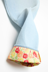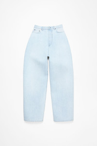 Denim trousers feature a bonded voluminous sculptural design crafted from non-stretch regenerative cotton in a light blue wash. Adorned with bow embroideries at the back pockets. Cut to a loose fit with a high waist, extra long length. - Loose fit - High waist - Extra long length - Bonded denim - Bow embroidery - 5-pocket construction - Model is 180 cm / 5'11 and wears a size 36 - Style ID: FN-WN-TROU001386 - Shell: 56% Regenerative cotton, 44% Cotton, Backing: 100% Polyurethane, Lining: 100% Polyester
