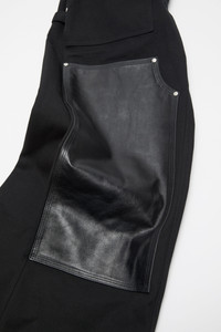 Trousers crafted from sturdy organic cotton canvas with leather patches on the front legs and leather patch pockets, featuring a 5-pocket construction, invisible snap button closure, and finished with a leather logo patch on the back waistline. Cut to a regular fit with a mid waist, straight leg, and long length. - Regular fit - Mid waist - Straight leg - Long length - Leather patches - 5-pocket construction - Invisible snap button closure - Leather logo patch - Style ID: RW-WN-TROU000001 - Made from organically grown cotton - Shell: 100% Cotton, Contrast: 100% Cow leather