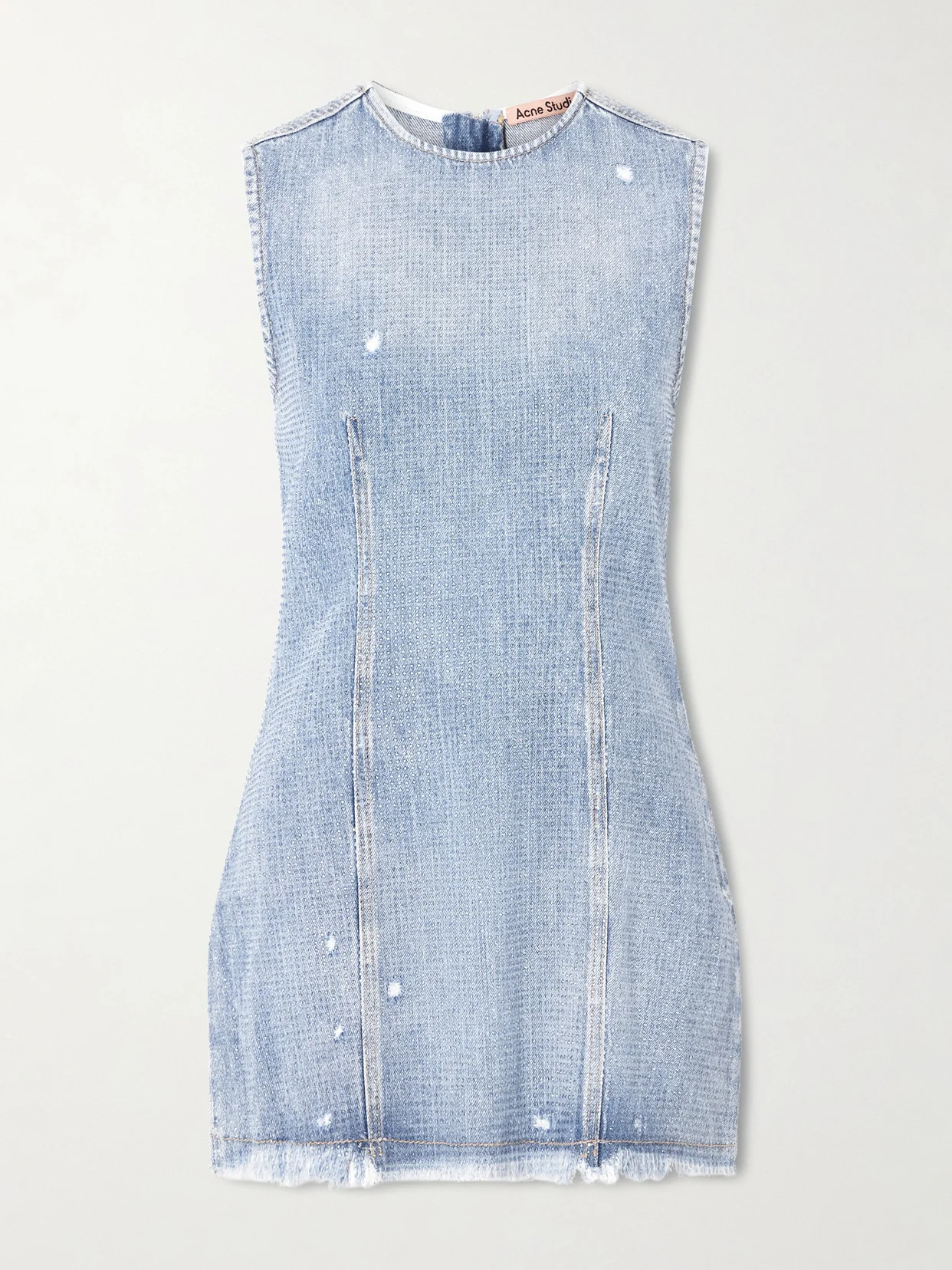 Denka Distressed Crystal-embellished Denim Mini Dress