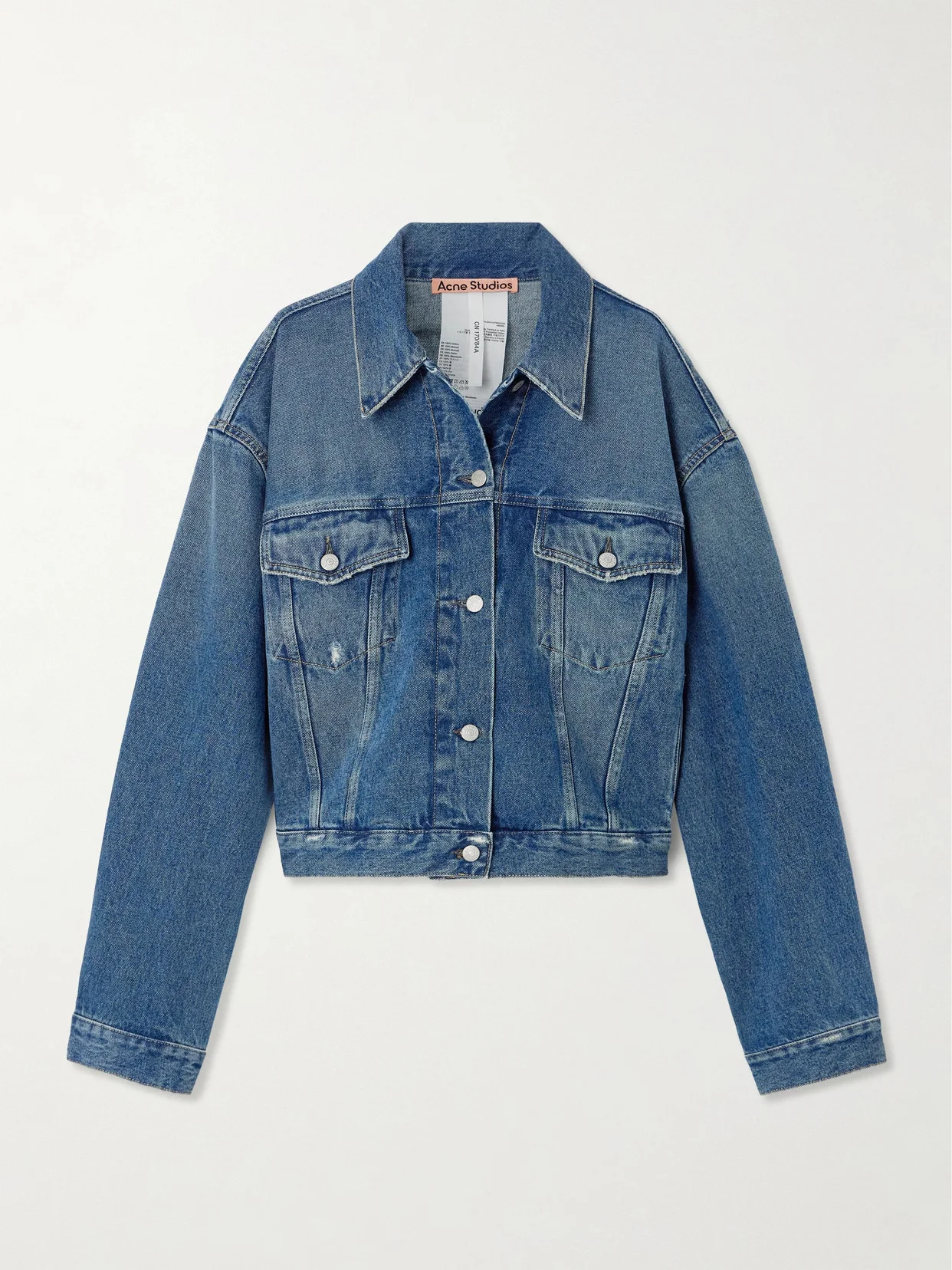 Classic and versatile, Acne Studios' jacket is so easy to style with nearly anything from dresses to tailoring. It's made from denim that's subtly distressed at the flap pocket and has dropped shoulders and a tapered hem with tabs to alter the fit.