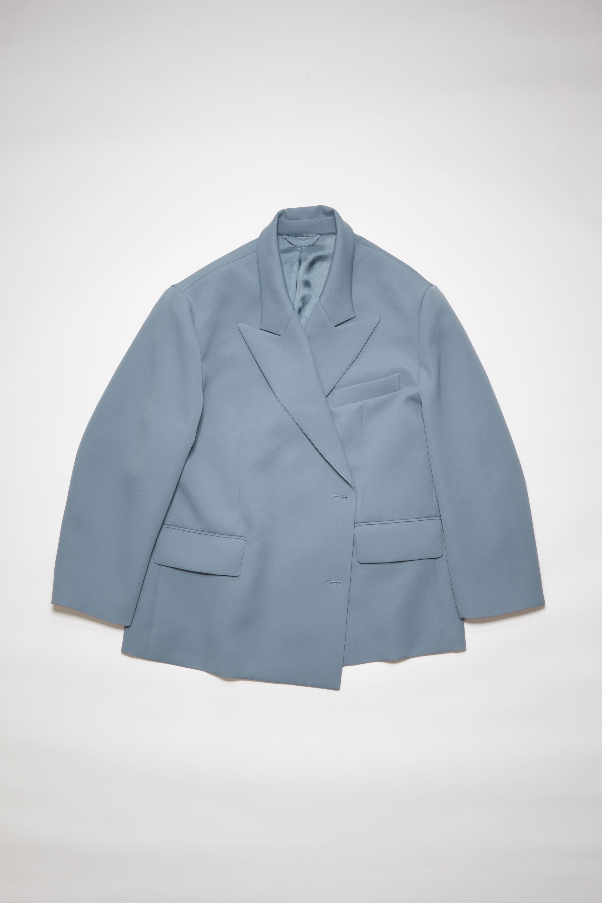 Acne Studios dusty blue double-breasted suit jacket features a singular button closure, flap pockets and a chest pocket. Cut to a relaxed fit. - Relaxed fit - Below the hip length - Double-breasted - Button closure - Flap pockets - Chest pocket - Model is 179 cm / 5'8 and wears a size 36 - Style ID: FN-WN-SUIT000455 - Shell: 100% Polyester, Lining: 100% Viscose