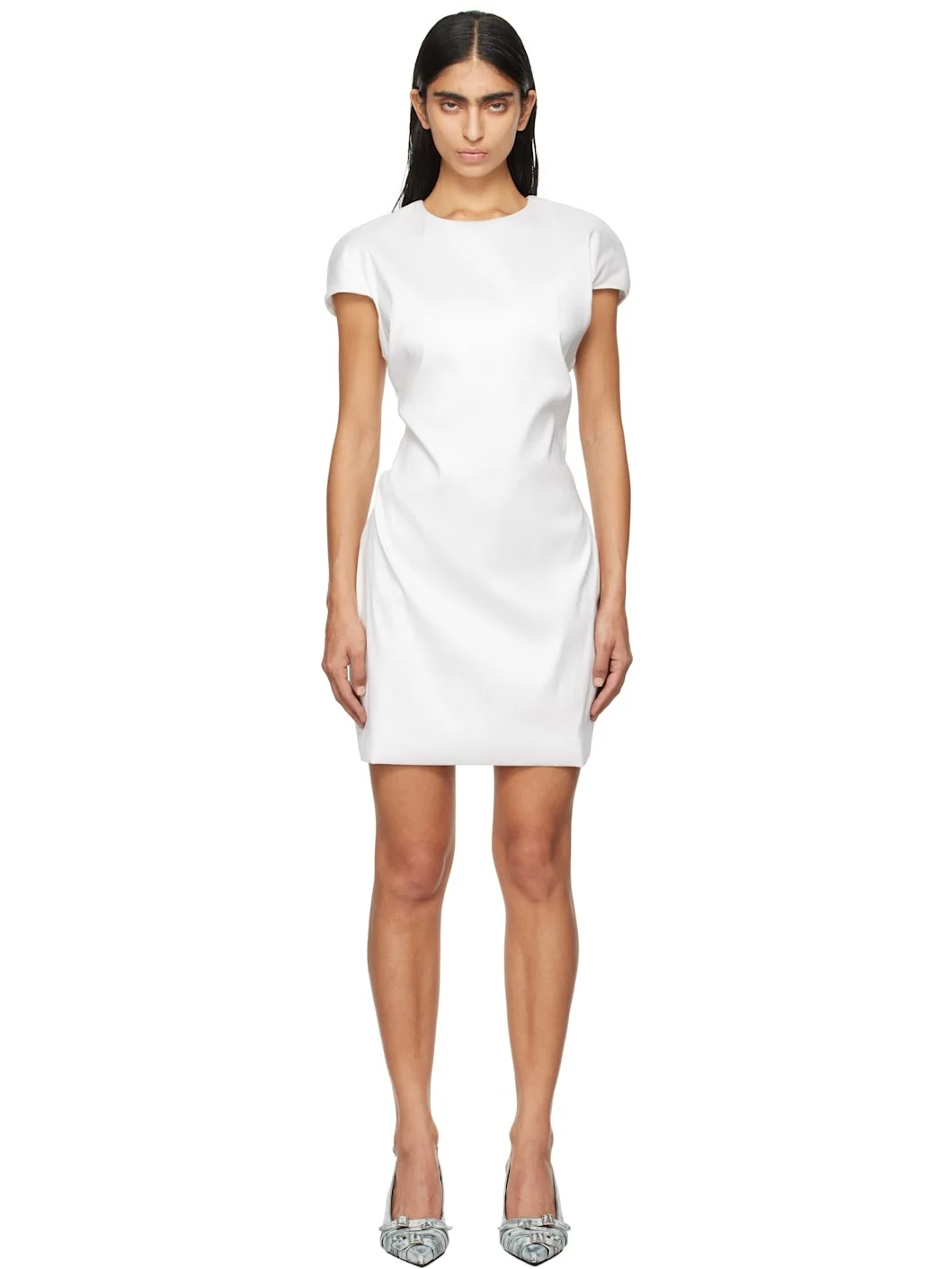 Mini t-shirt dress from the FW24 show collection features a draped construction with a gathered effect at the back. Crafted from a twill fabric with a slight iridescent shine. Cut to an a-line silhouette and mid-thigh length. - Regular fit - Mid-thigh length - Crew neckline - Draped pleat details - Discrete back zipper closure - Model is 178cm/ 5'10 and wears a size 36 - Style ID: FN-WN-DRES001340 - Shell: 86% Polyester, 13% Nylon, 1% Elastane, Lining: 74% Nylon, 26% Elastane