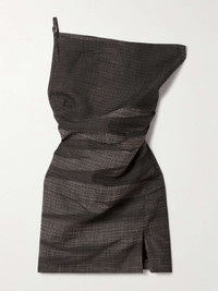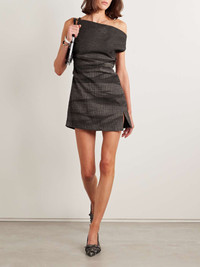 EDITORS'NOTES Acne Studios' dress is printed with subtle checks interspaced by shadowed crease marks, creating a cool, slouchy look. It's cut from linen-blend and has a one-shoulder neckline that adjusts with a slim buckled strap. A small slit at the mini hem shows off a little extra leg. SIZE & FIT Model measurements: - Fits true to size, take your normal size - Those with a curvy figure may wish to take the next size up - Designed for a slim fit - Particularly short in length - Mid-weight, non-stretchy fabric - Model is 177cm/ 5'10" and is wearing a size FR 36 - Bust: 79cm/ 31" - Waist: 61cm/ 24" - Hip: 85cm/ 33.5" DETAILS & CARE - Multicolored linen-blend - Concealed zip fastening along side - 60% linen, 26% viscose, 14% polyester; lining: 100% viscose - Dry clean