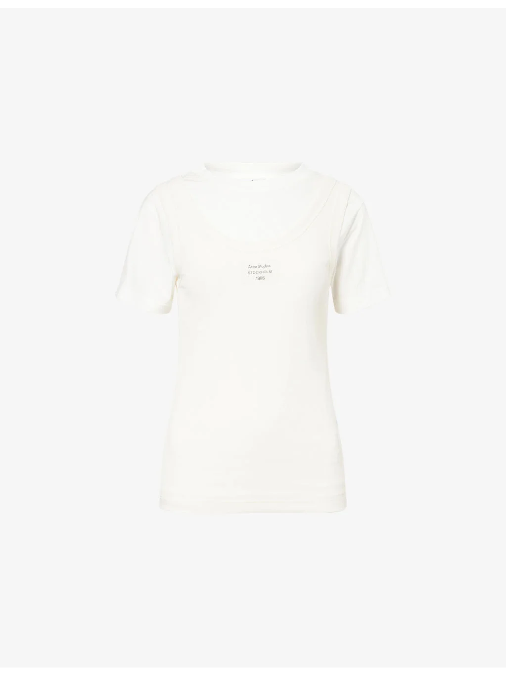 PRODUCT DETAILS - Acne Studios stretch-cotton T-shirt - 90% cotton, 10% elastane; contrast 96% cotton, 4% elastane - Slim fit, ribbed round-neck, short sleeves, contrast sleeveless ribbed top, brand patch at front - Machine wash at 30°C - Made in Portugal - True to size - Model is 5ft 10in/1.78m and wears a size small - Lightweight, stretchy Ref: R04582950