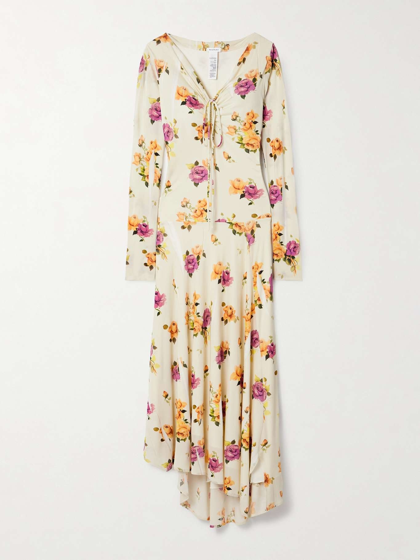 EDITORS'NOTES Acne Studios' dress is made from crepe patterned with beautiful flowers and the illusion of rips throughout, creating subtle juxtaposition. It has long ties that adjust the neckline and fits slim before flaring out to a floaty, asymmetric hem. SIZE & FIT Model measurements: - Fits true to size, take your normal size - Cut to be fitted at the bust and waist, loose at the hip - Lightweight, stretchy fabric - Model is 180cm/ 5'11" and is wearing a size Small - Bust: 73.5cm/ 29" - Waist: 61cm/ 24" - Hip: 90cm/ 35.5" DETAILS & CARE - Multicolored crepe - Slips on - 100% viscose; lining: 74% nylon, 26% elastane - Dry clean