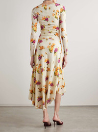 Asymmetric floral-print crepe dress Cream