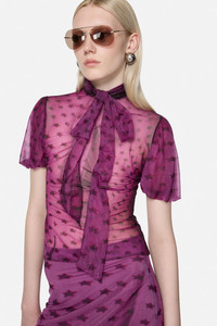 Sheer bow blouse - Bright purple