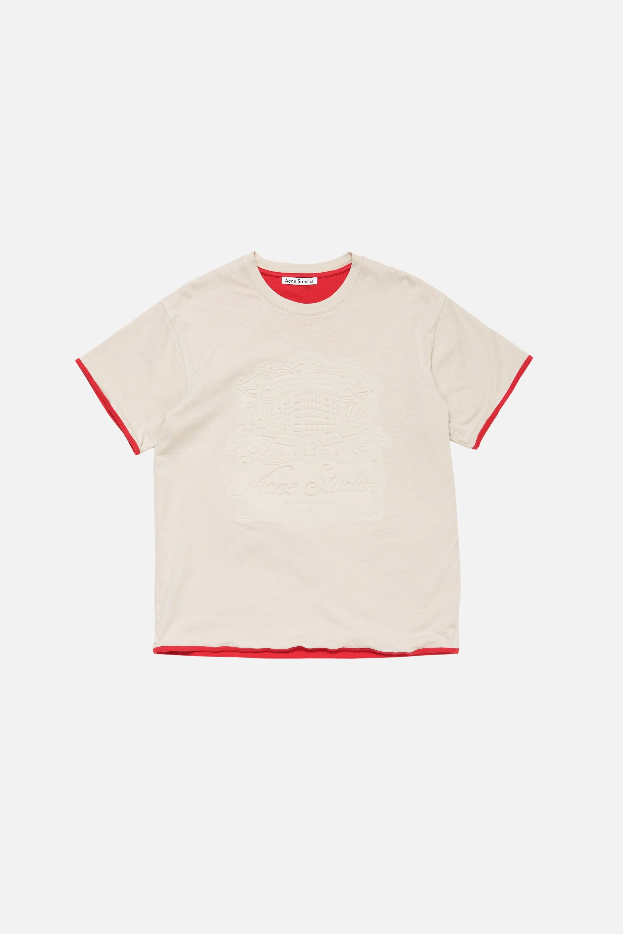 Crewneck, short-sleeve t-shirt in organic cotton jersey with a textured surface and embossed seasonal logo. Cut to a regular fit and below-hip length. - Regular fit - Below-hip length - Embossed seasonal logo - Ribbed neck - Model is 178 cm / 5'8 and wears a size S - Style ID: FN-WN-TSHI000754 - Made from organically grown cotton - Shell: 100% Cotton, Contrast: 100% Cotton