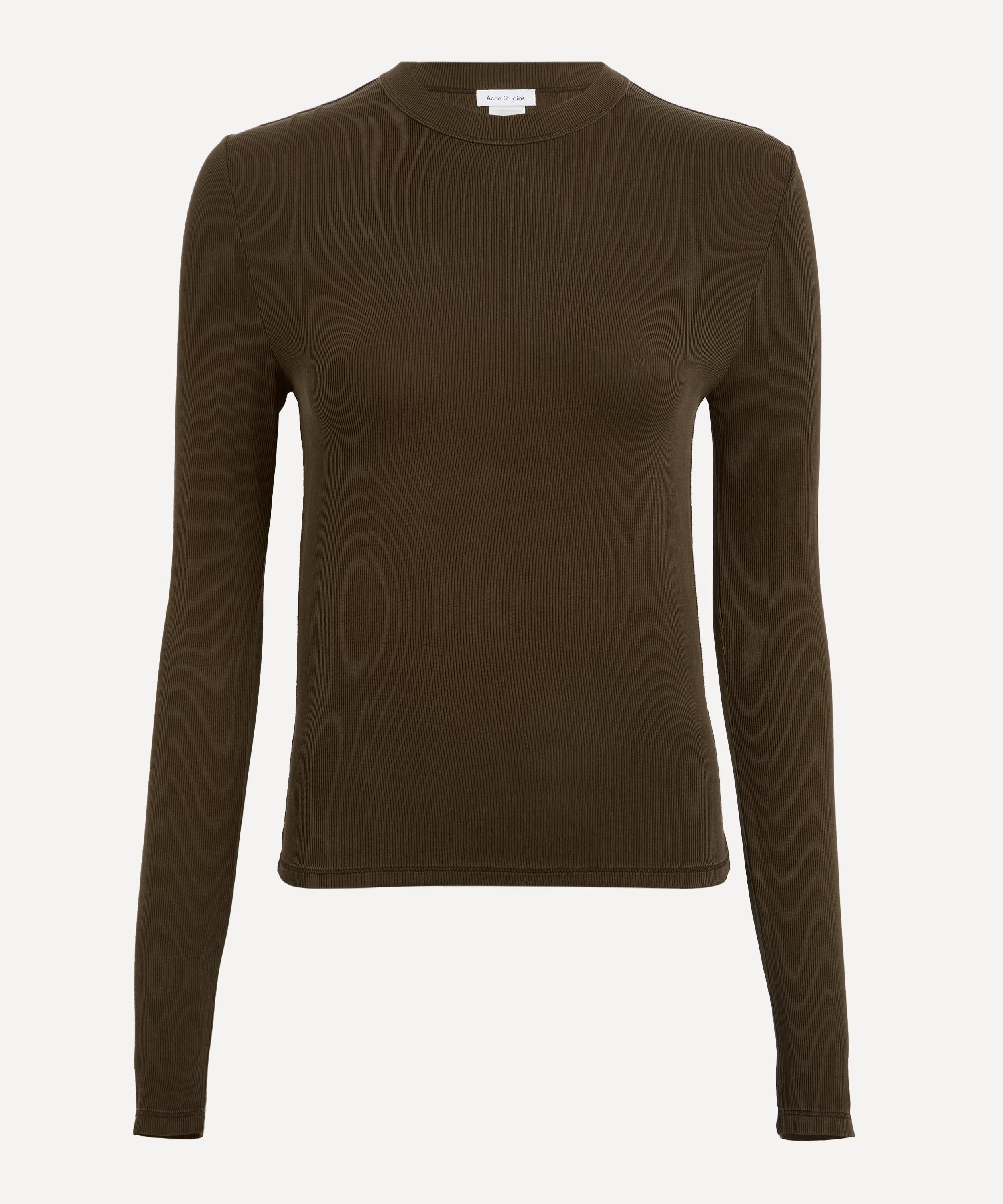 DETAILS Ribbed cupro top Form-fitting fit Long sleeves Crew neckline Acne Studios label SIZE & FIT Model is 178cm/5'10"; Chest: 81cm; Waist: 66cm; Hip: 91cm and wears a size S COMPOSITION & CARE 95% Cupro; 5% ELastane Machine washable