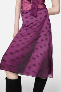 Midi skirt crafted from transparent, shiny jersey that drapes fluidly, featuring an all-over seasonal print. Finished with an invisible zip closure for a seamless fit. - Sheer midi sirt - Regular fit - Mid-calf length - All-over seasonal print - Invisible zip closure - Model is 180 cm / 5'9 and wears a size 36 - Style ID: FN-WN-SKIR000884 - Shell: 100% Nylon, Lining: 20% Elastane, 80% Nylon
