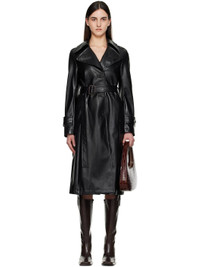 Black Vintage Faux-Leather Trench Coat