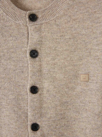 SKU: 713-000411 01 BRAND ID: FA-WN-KNIT000011 Fitted Cardigan Wool Fitted Cardigan By Acne Studios • Ribbed finishes at cuffs and hem for a secure fit • No pockets or zippers • Minimalist design with a focus on fabric quality • Fitted cut, ideal for a casual look • Plain, no prints • Made from high-quality wool for exceptional softness • Fitted Cardigan Wool • Button closure • Round neck Composition: 85% wool, 15% yak wool Made in: Italy