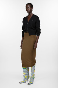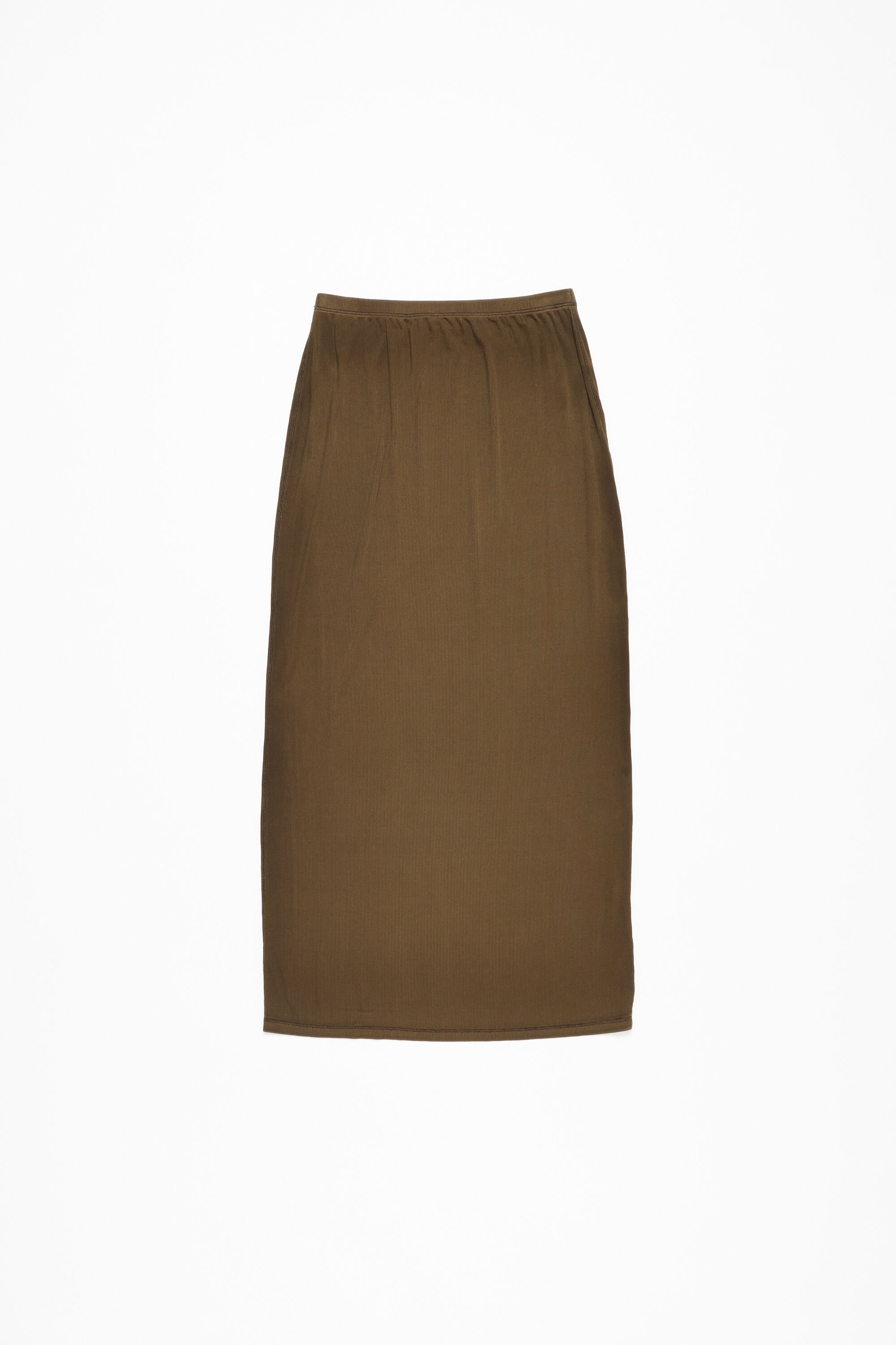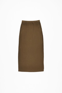 Skirt features a seamless construction with sprayed finish details at the waistband and bottom hem. Cut to a fitted fit and mid-calf length. - Fitted fit - Elasticated waistband - Sprayed finish - Each sprayed finish is unique and will differ slightly from the image. - Model is 178cm/ 5'10 and wears a size S - Style ID: FN-WN-SKIR000791 - Shell: 95% Cupro, 5% Elastane