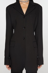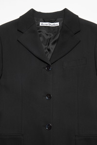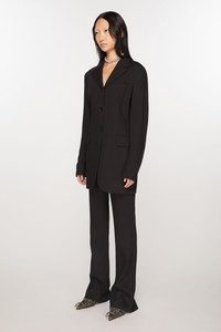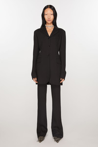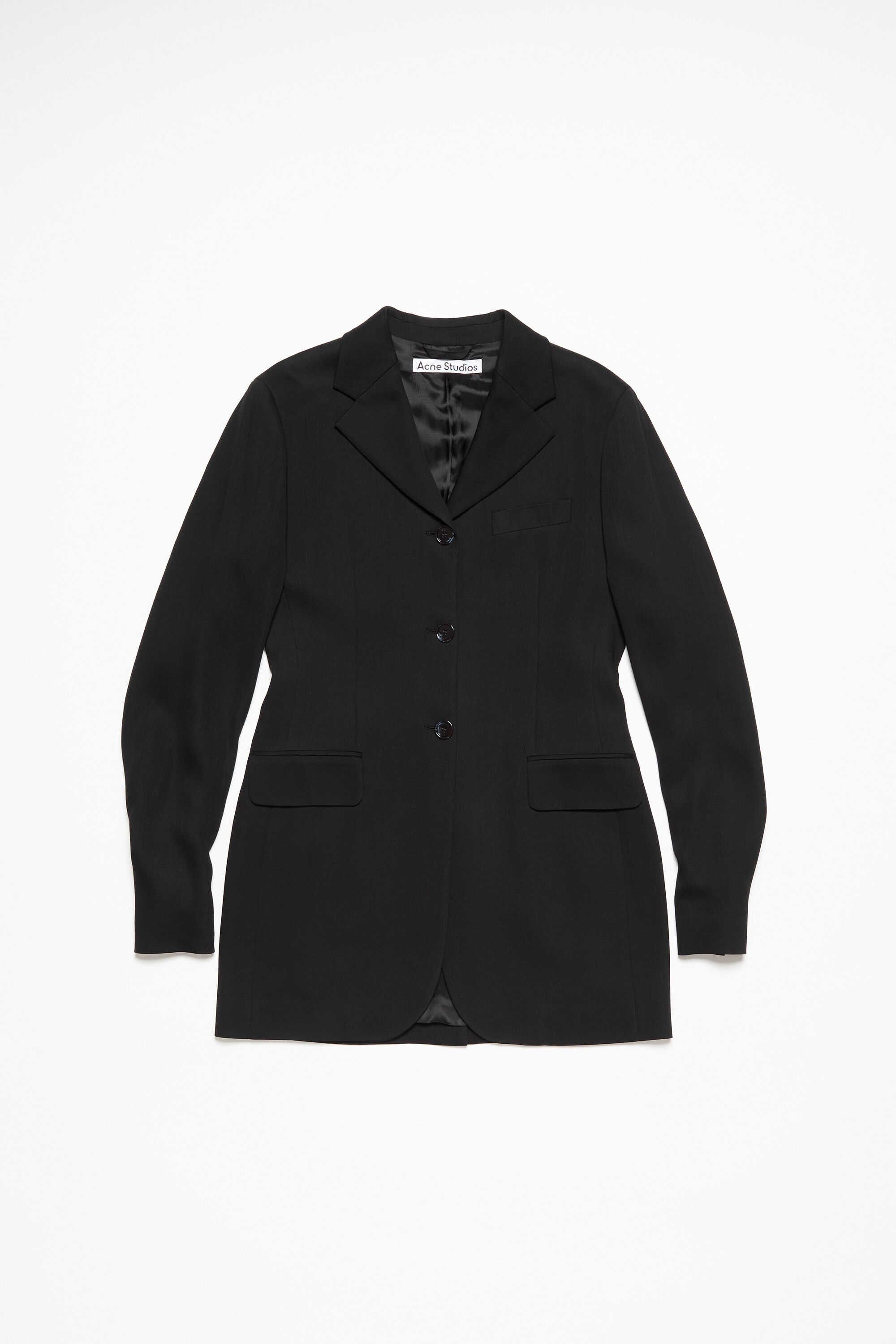 Single-breasted tailored blazer is crafted from a lightweight wool blend with a fluid appearance. Detailed with a centre front button-up closure, chest welt pockets and jetted flat pockets. Cut to a fitted silhouette, with classic notched lapel and thigh length. - Fitted fit - Thigh length - Single-breasted - Classic notch lapel - Centre front button-up closure - Chest pocket - Jetted flap pockets - Model is 177 cm / 5′9 and wears a size 36 - Style ID: FN-WN-SUIT000526 - Shell: 69% Wool, 31% Viscose, Lining: 100% Viscose